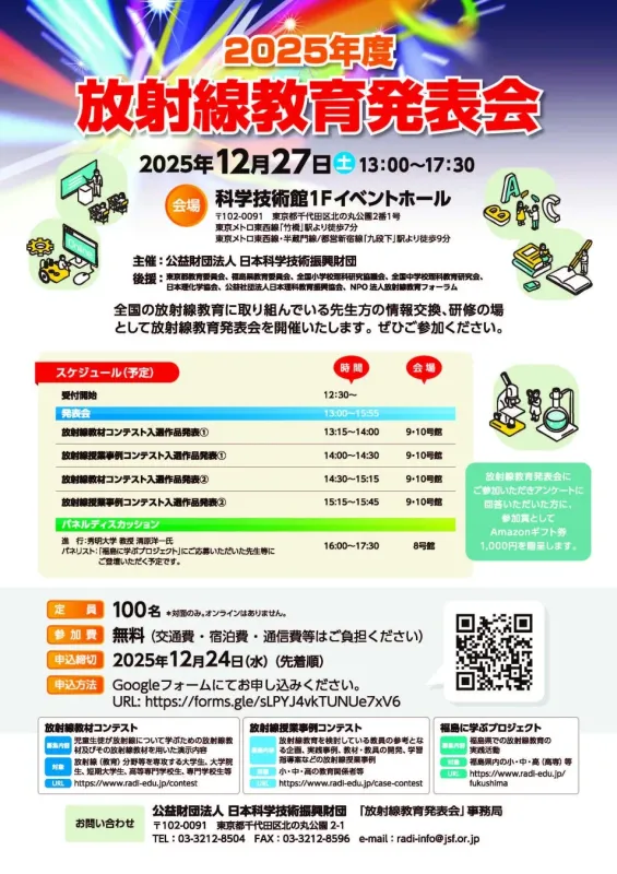 子どもたちの放射線教育をより良くするための新しい教材と授業事例が決定し、2025年12月27日には科学技術館で発表会が開催されます。無料で参加できるこの機会に、放射線教育の最新情報を知ることができます。 -