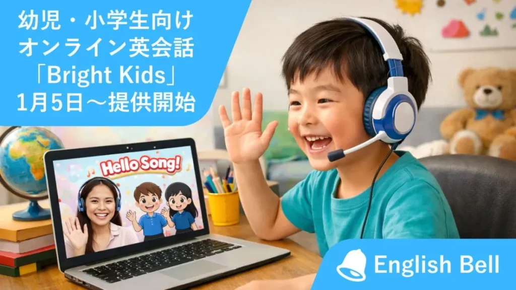オンライン英会話「English Bell」が、幼児・小学生向けの新クラス「Bright Kids」を2026年1月5日より提供開始します。英語学習の低年齢化が進む中、子どもたちが「英語って楽しい!」と感じながら自然に学べる工夫が凝らされており、保護者の「続けられるか不安」といった声にも寄り添う設計となっています。フォニックス学習や将来の英検対策につながる基礎力養成、充実したサポート体制など、その特長をご紹介します。 -