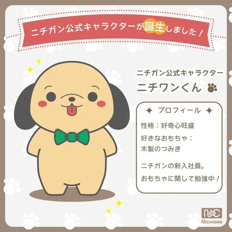 木のおもちゃの老舗ニチガンから「ニチワンくん」が誕生!LINEでお得情報も