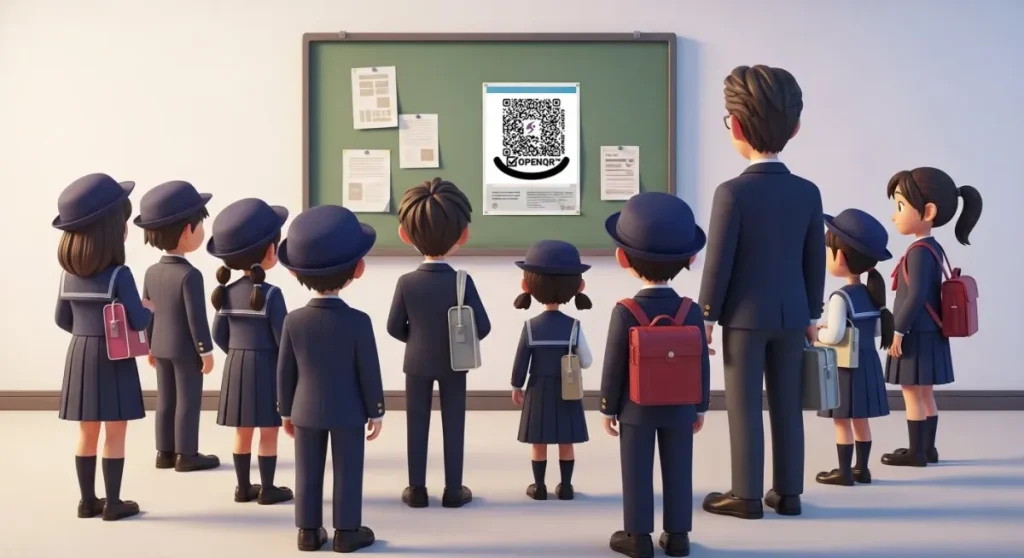 2026年2月10日、就実小学校で世界初となる「OPENQR™」の実務運用が始まりました。この新しいシステムは、QRコードを読み取る前にその安全性を確認できるため、お子さんが使うQRコードの心配を減らし、保護者の方に安心を届けます。