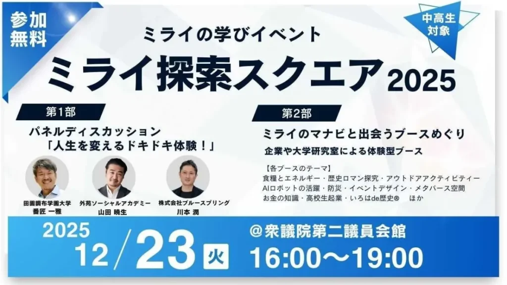 衆議院第二議員会館で開かれる「ミライ探索スクエア2025」は、中高生だけでなく小学生も親子で参加できる体験型教育イベントです。普段の勉強とは違う、ワクワクする学びの機会について、小学生の保護者目線でご紹介します。 -