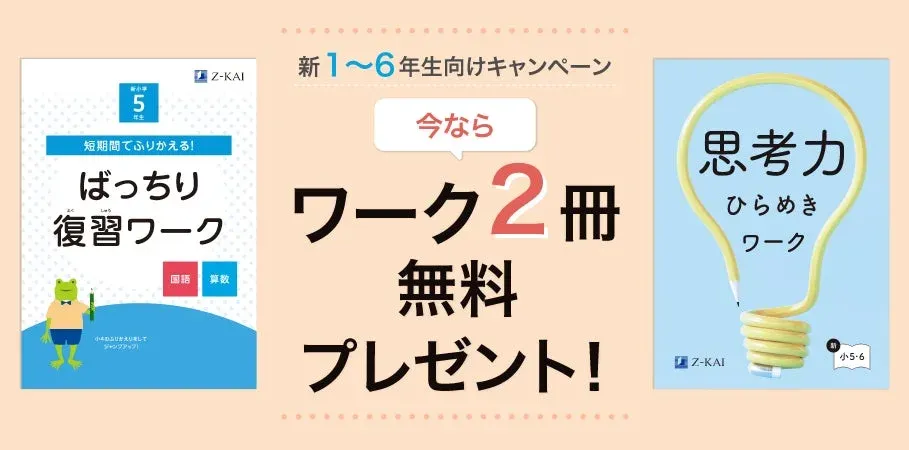 Z会の通信教育が、小学生向けコースの資料請求者を対象に、新学年の準備や復習に役立つワーク2冊と「おためし教材」を無料でプレゼントするキャンペーンを開始しました。新小学1年生から6年生まで、それぞれに合った教材が届きます。 -
