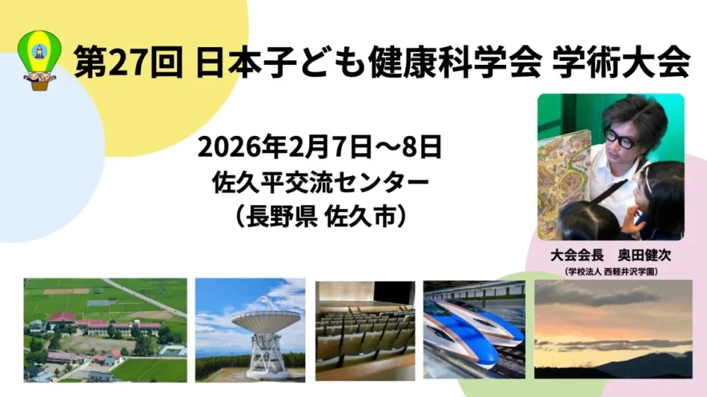 2026年2月、長野県佐久市で「第27回日本子ども健康科学会学術大会」が開催されます。医療、教育、心理、福祉の専門家が集まり、子どもの健康と成長について深く議論。特に保護者向けの無料講座「叱りゼロで『自分からやる子』に育てる方法」は、日々の育児に役立つヒントが満載です。 -