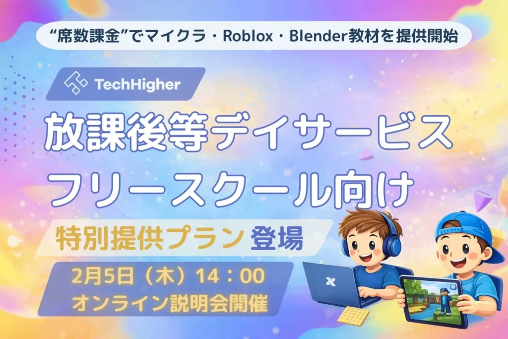 株式会社エクシードが、放課後等デイサービスやフリースクール向けに、マインクラフト、Roblox、Blenderの教材を「席数課金」という新しい料金体系で提供開始します。これにより、子どもたちが創作活動やIT学習に触れる機会が増え、保護者にとっても費用負担を抑えながら質の高い学習を提供できる可能性が広がります。 -