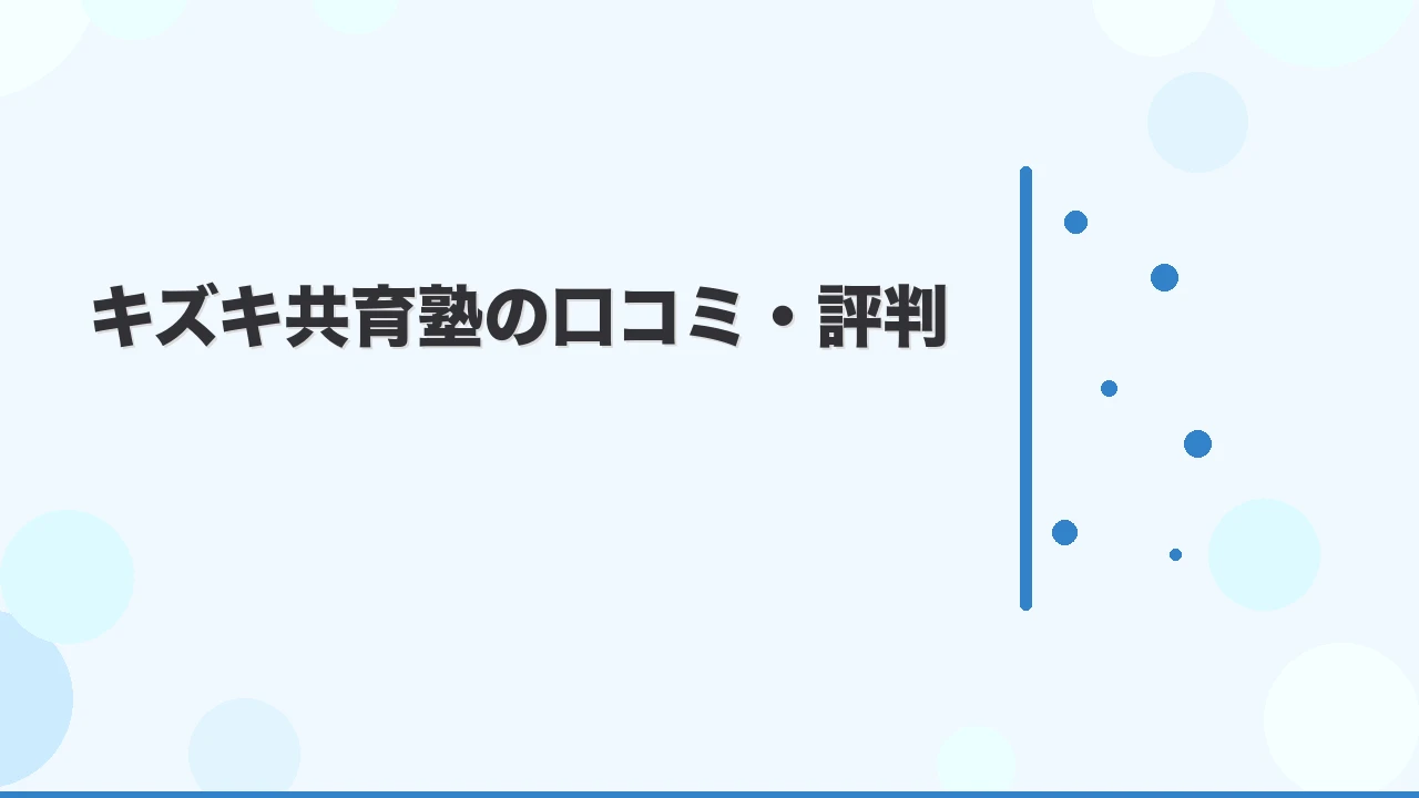 この記事では、キズキ共育塾の口コミ・評判をもとに、以下の3点を整理しました。