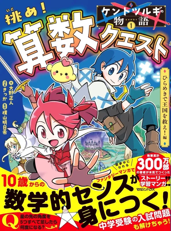 勉強が得意な兄のケントと、格闘技が得意な妹のツルギが、異世界で算数の問題と向き合い、悪と戦いながら王国を救うファンタジーストーリーです。数字の裏技でレストランを救ったり、算数ダンジョンでお宝を見つけたりと、読み進めるうちに自然と算数に触れることができます。読書や勉強が苦手なお子さんでも、物語の力でどんどん読み進められるでしょう。