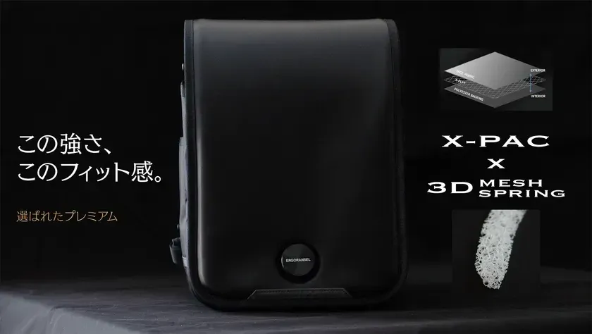 業界初の素材「X-PAC」を採用:軽くて丈夫、そして雨にも強い高機能素材がランドセルの本体に使われています。