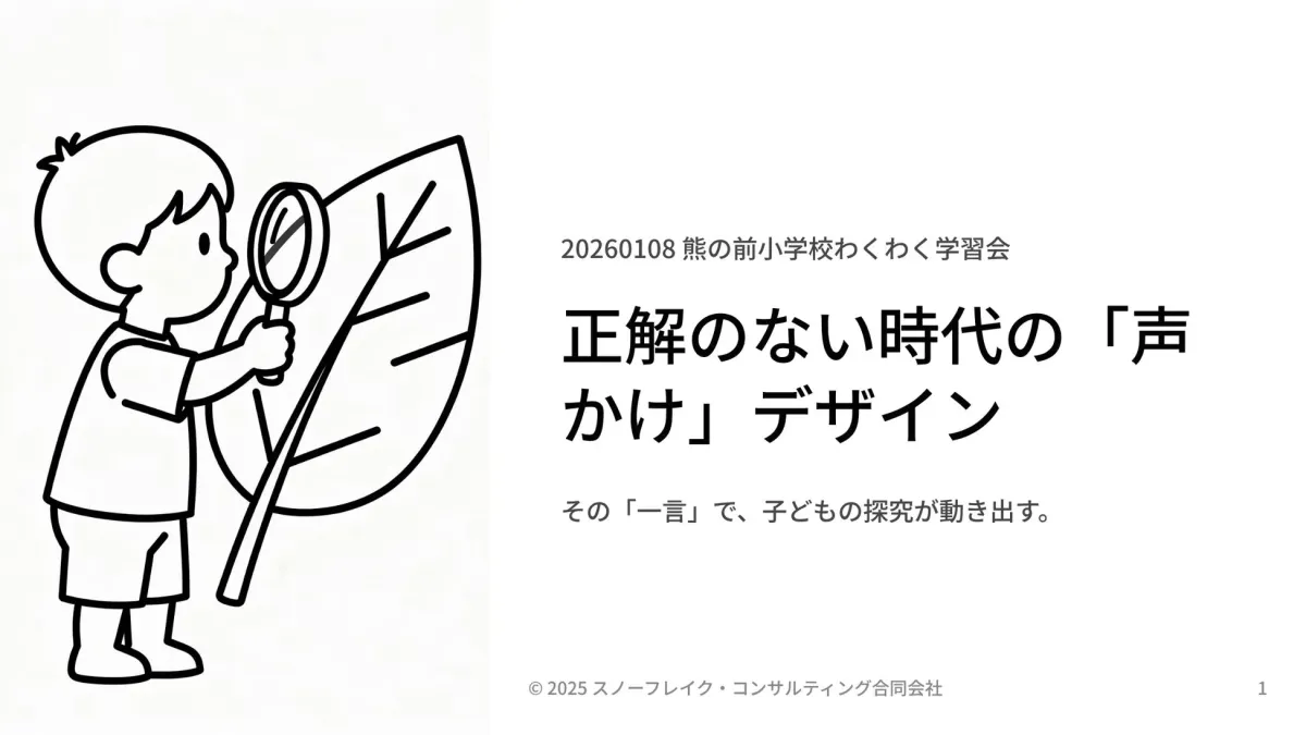 名古屋の小学校で行われた今回の勉強会は、子どもたちの探究学習をより良いものにするための、新しい一歩だと感じました。先生方が「エフェクチュエーション」という考え方を取り入れ、子どもたちの「自分で考えて行動する力」を育むための「声かけ」を学ぶ。これは、子どもたちがこれからの予測できない時代を、たくましく生き抜くための大切な土台になるはずです。学校と家庭が協力して、子どもたちの「学びたい」という気持ちを大切に育んでいきたいですね。