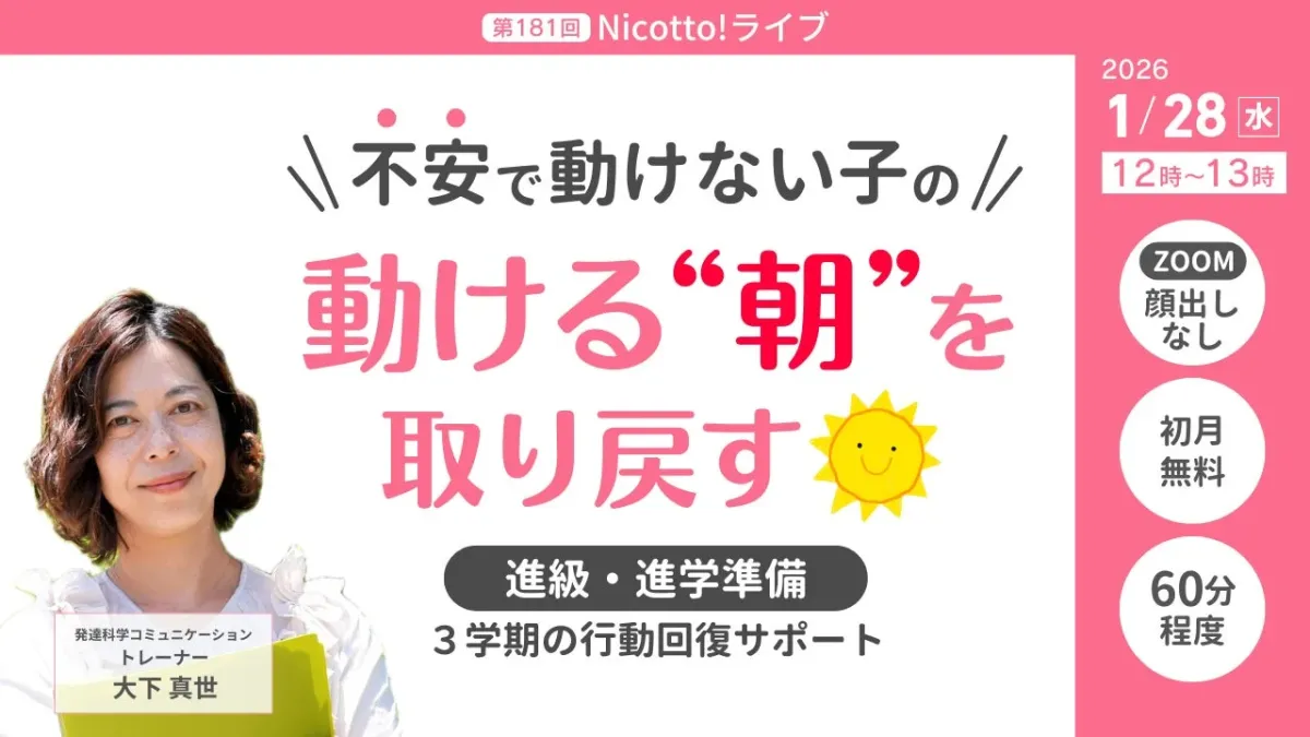 進級・進学は、子どもにとっても親にとっても大きな節目です。もし今、お子さんが朝起きるのがつらそうだったり、学校生活に不安を感じていたりするなら、それは親子のコミュニケーションを見直す良いきっかけかもしれません。このオンラインライブが、お子さんの心と体の状態を理解し、4月からの新生活を笑顔で迎えられる一助となることを願っています。