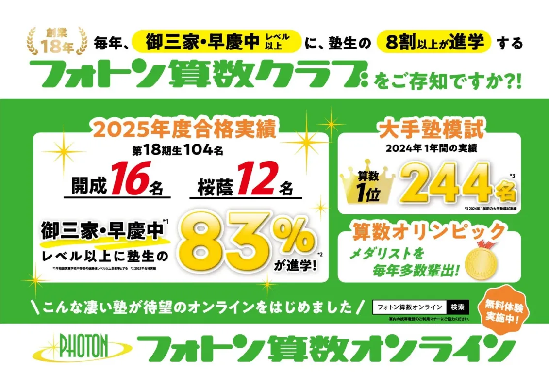 フォトン算数クラブ(対面): https://www.photon-sansu.jp/