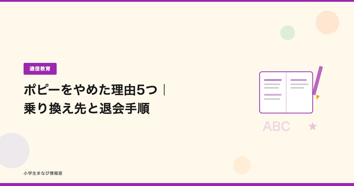 この記事では、実際にポピーをやめた保護者の口コミから分かった退会理由5つと、やめた後の乗り換え先として選ばれている通信教育をまとめています。